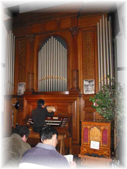 ↑小樽オルゴール堂では古いパイプオルガンの演奏会が行われる。
